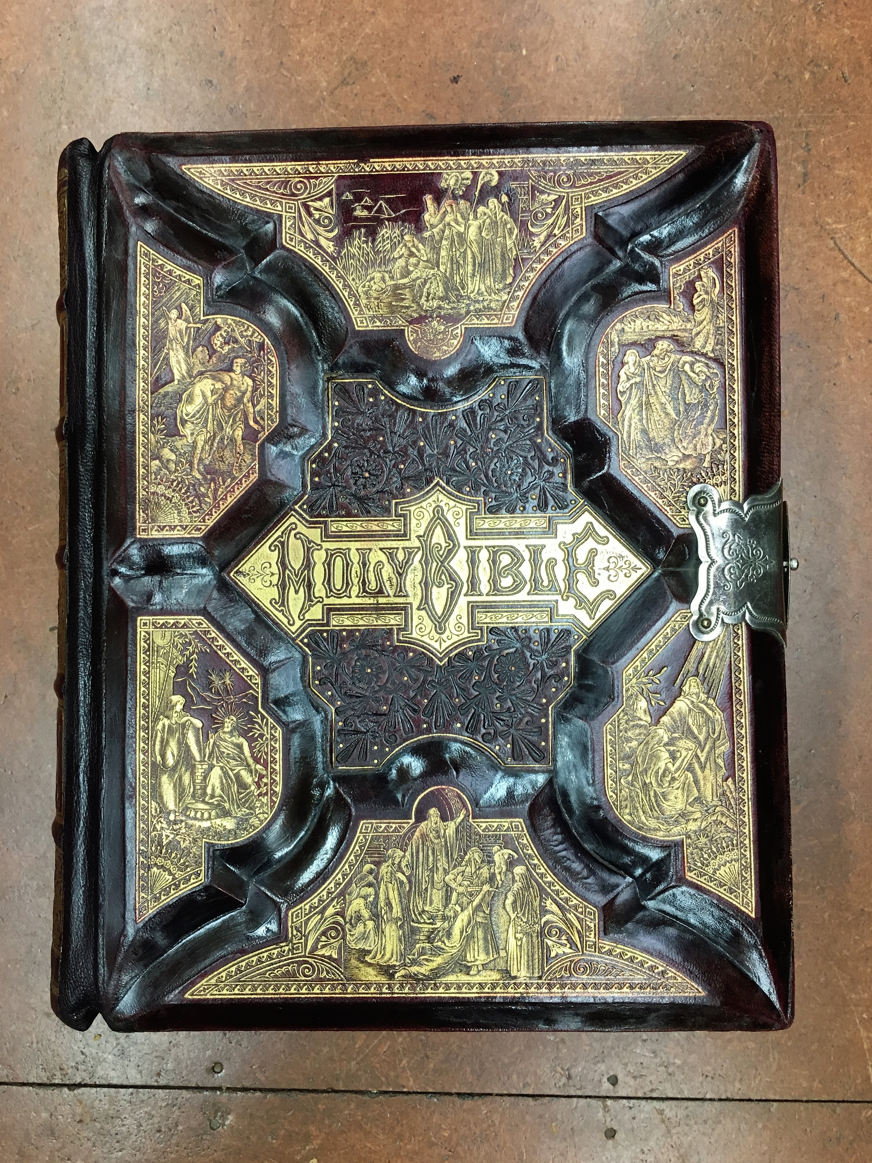 This is a typical Victorian bible with sculptured boards. Both boards were detached and a number of pages needed repairs. Leather at the head and tail of the spine was worn away. Most of the textblock was intact. The original spine leather was removed and saved for later. I repaired the damaged pages and re-attached … Continue reading Victorian Bible