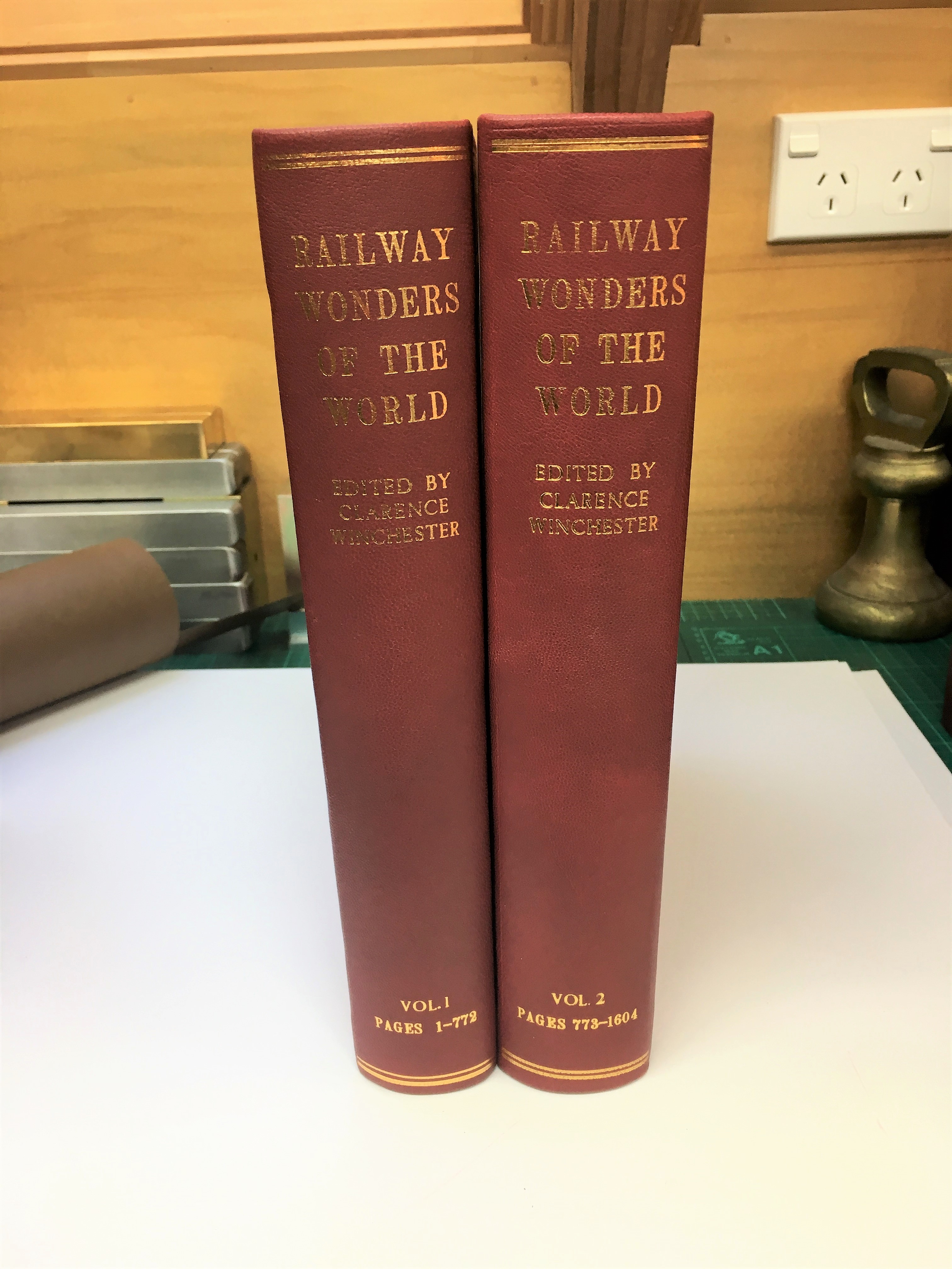 The main damage to these books was the cloth on each spine that had deteriorated badly with UV damage. Otherwise, the cloth was in reasonable order. There was also moisture and mould damage as shown in the photos. The books themselves were heavy and I used a smooth colour-matched leather to make two new spines. … Continue reading Railway Wonders of the World