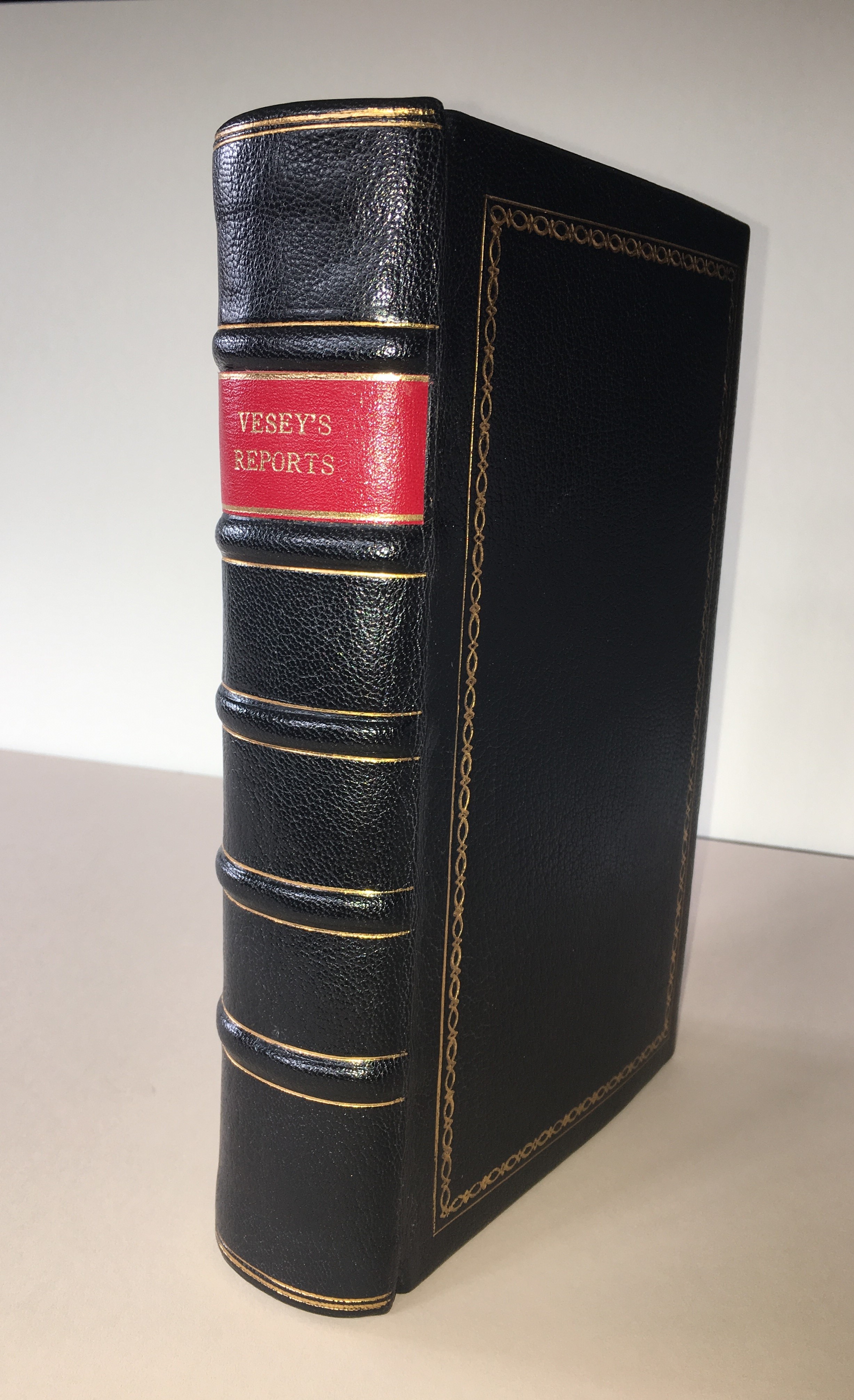 Both boards of this 1807 volume of Chancery Law Cases were burnt and could not be saved necessitating the rebinding of the book. So the book was disbound; re-sewn on double raised cords; and covered in new black goat leather with marbled endpapers. A title was tooled in gold on the spine. Both boards were … Continue reading Vesey’s Reports, 1807